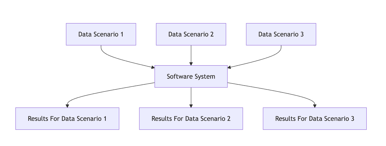 Software is essentially made up of data (states) and functions (methods). The goal of a software simulator is to generate different data that enables the developer to see how the various functions in a software system respond to different inputs.